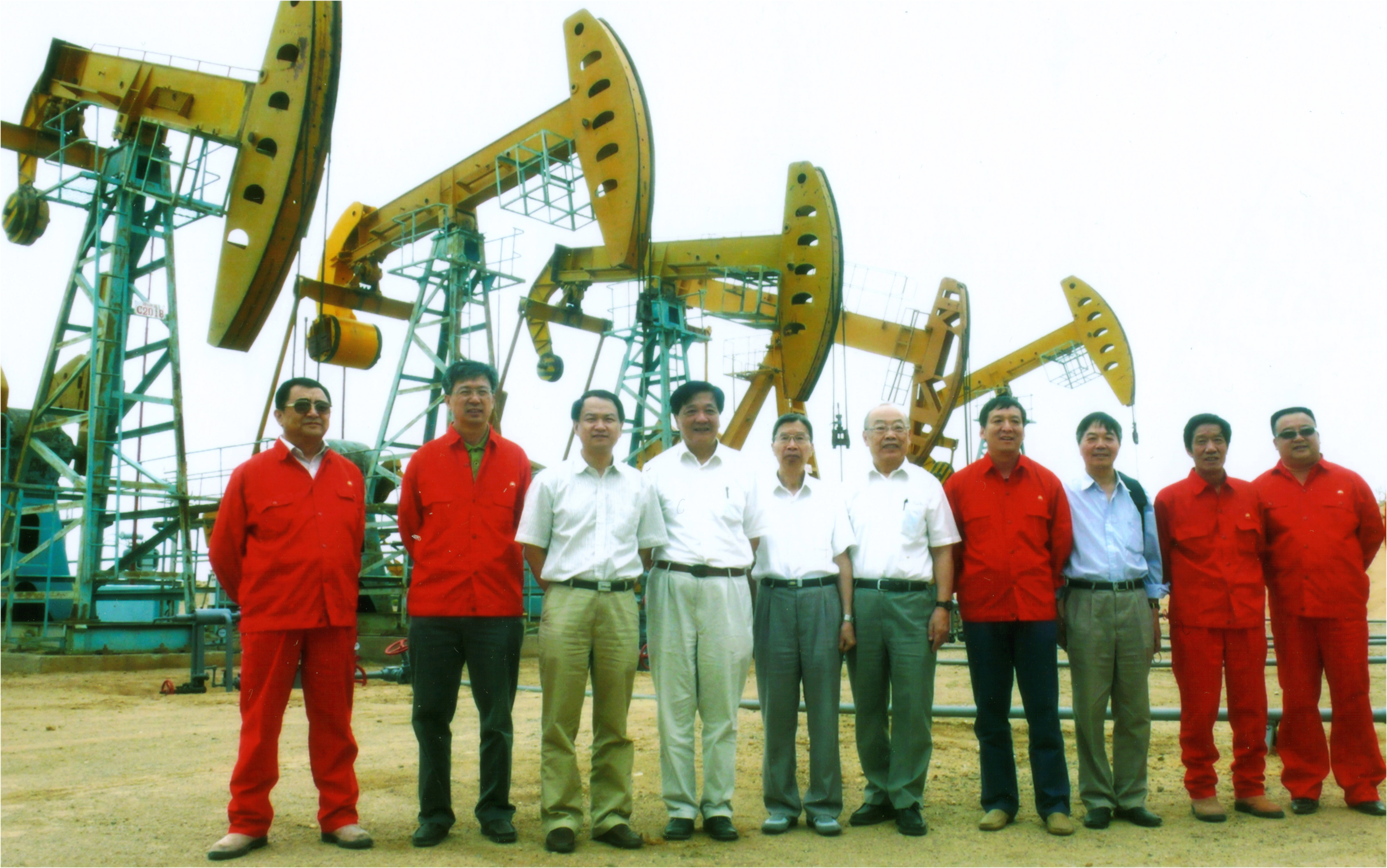 吴承康(左6)等人在新疆油田参观