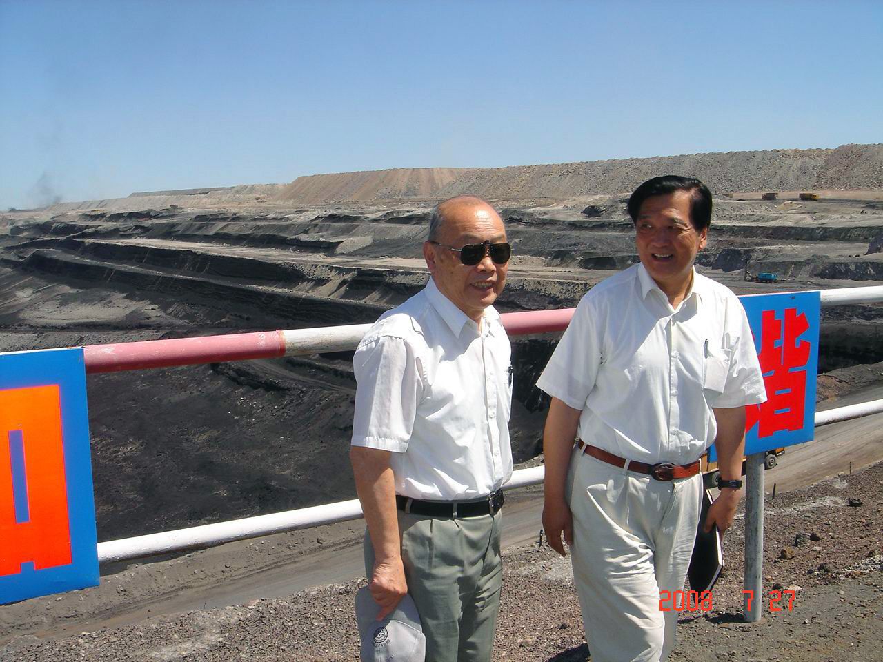 吴承康(左)在准东露天大煤矿与严陆光(右)合影